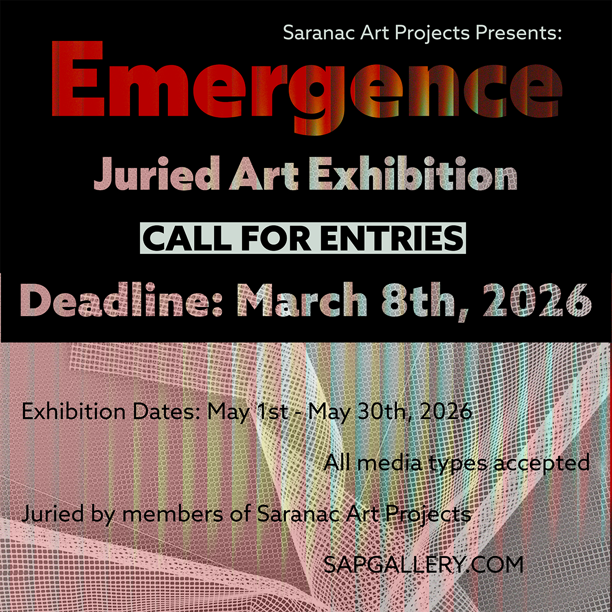 As a nationally juried exhibition hosted by Saranac Art Projects, Emergence seeks to highlight contemporary visual artists engaged in pushing boundaries and expanding definitions of emergence in concept, process, or form.